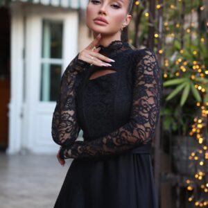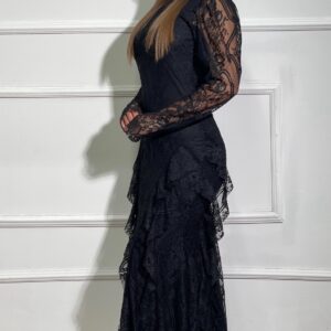 שמלת ערב צנועה מבד תחרה בצבע שחור