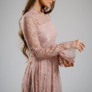 שמלת ערב מריה- שמלה עשירה מבד תחרה בצדדים