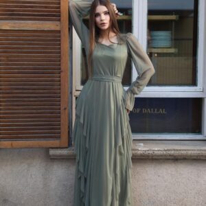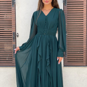 שמלת ערב מקסי שיפון צנועה מלמלה ירוקה
