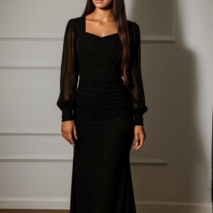 שמלת ערב שחורה רג׳ינה – נצנץ עדינה כיווצים במותן