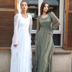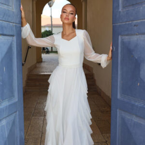 שמלת ערב מקסי שיפון צנועה מלמלה צבע לבן נסיכותי