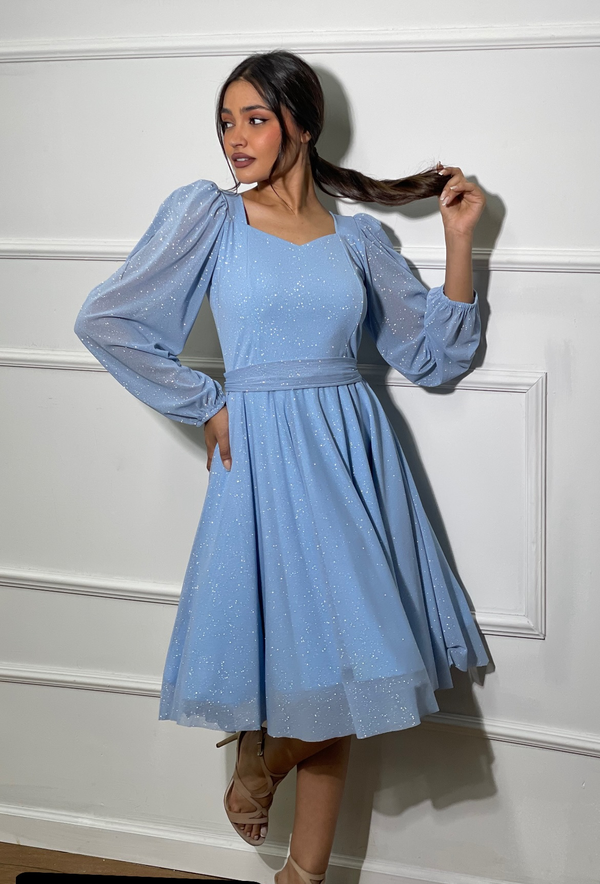 שמלת ערב צנועה מגיעה עם מפתח צוואר מרובע