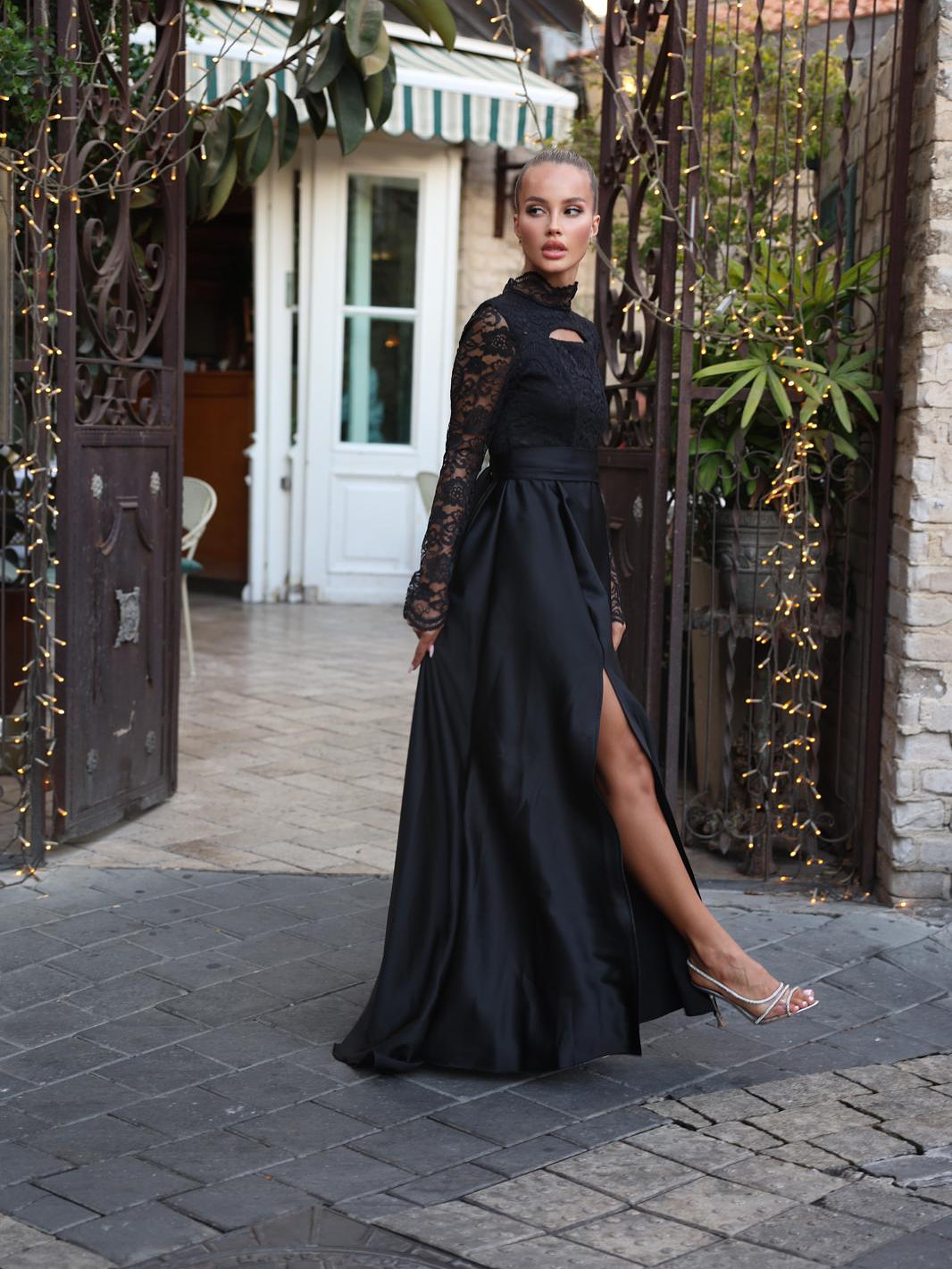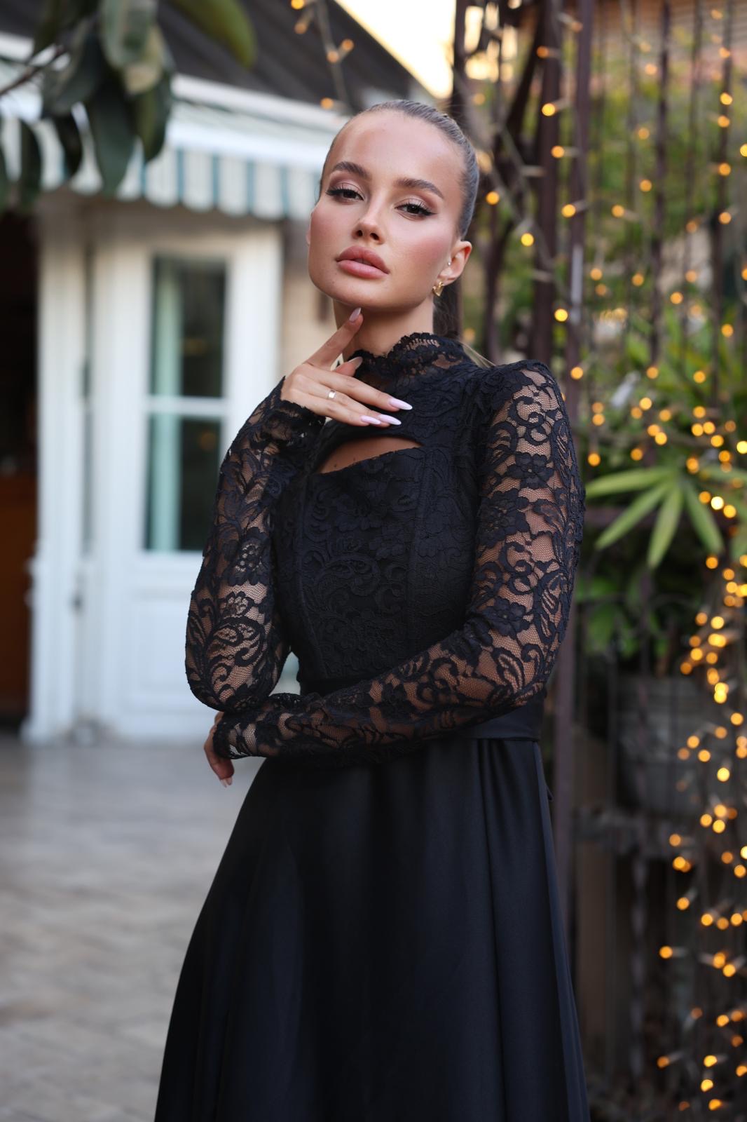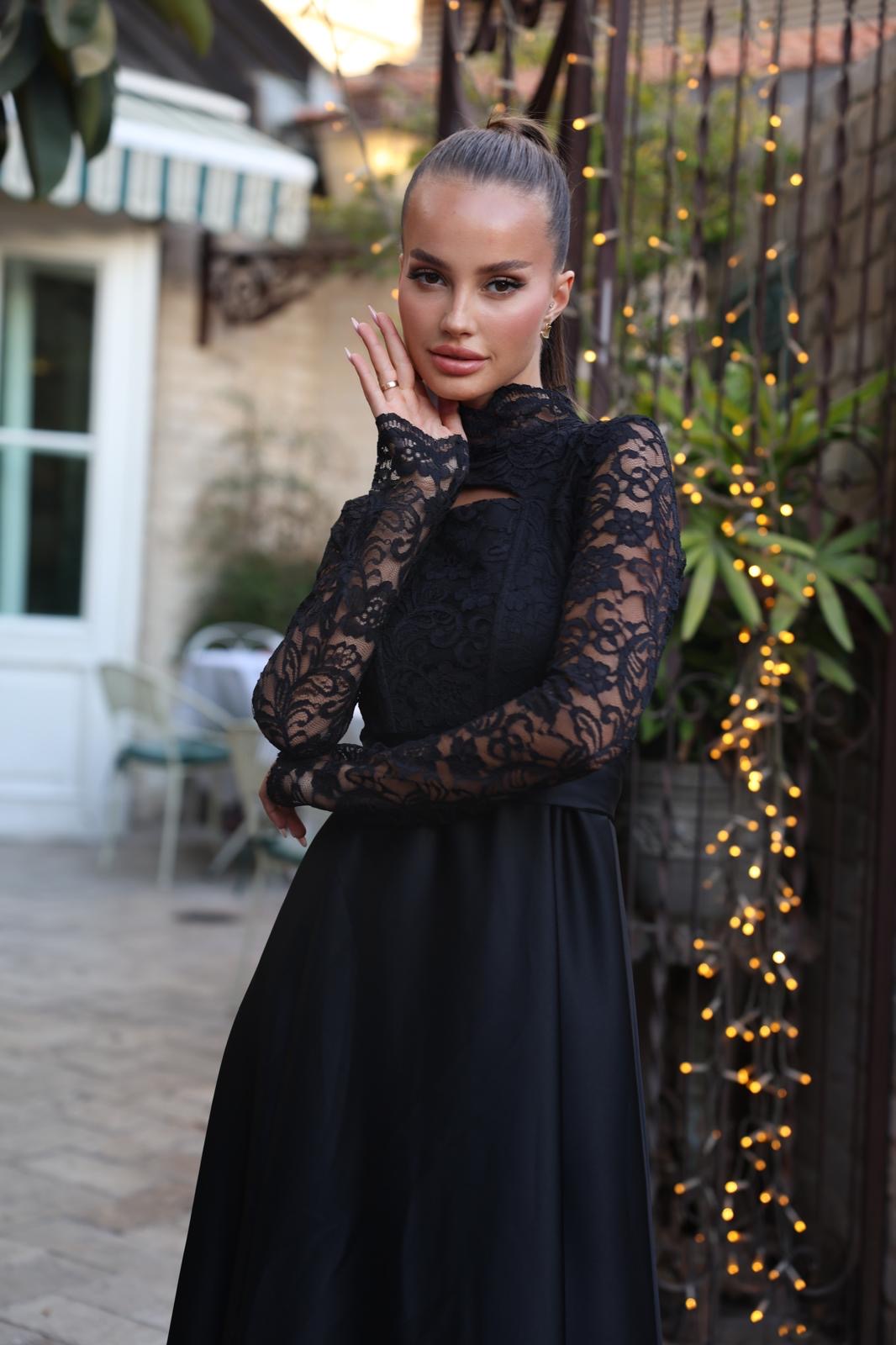 שמלת ערב תחרה סאטן שחורה